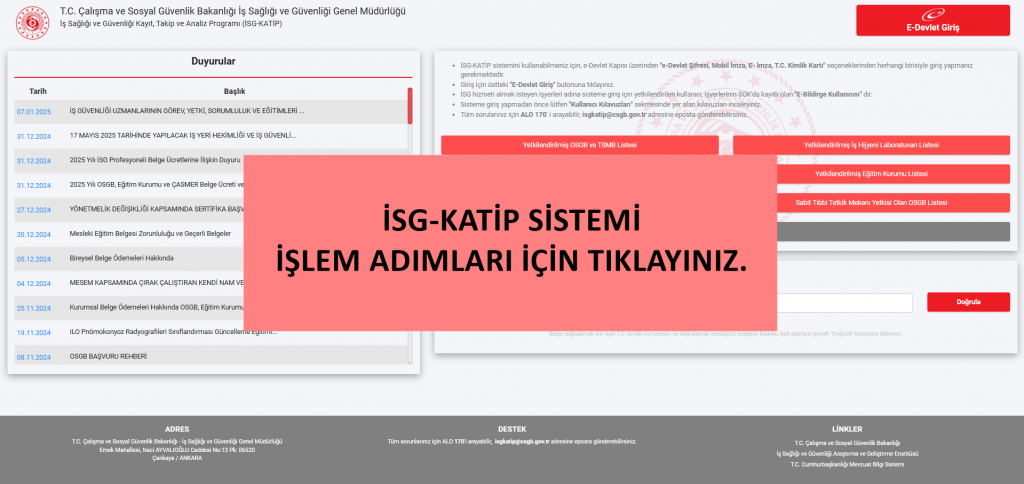 İSG-KATİP Sistemine kayıt için işlem adımları :