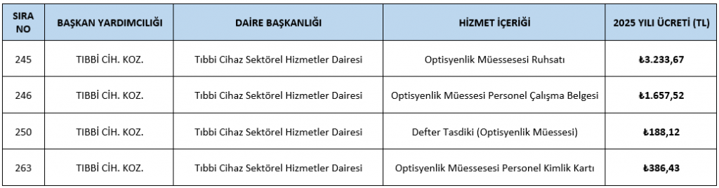 Optisyenlik Müessesesi Ruhsat Harcı: 3.233,67₺